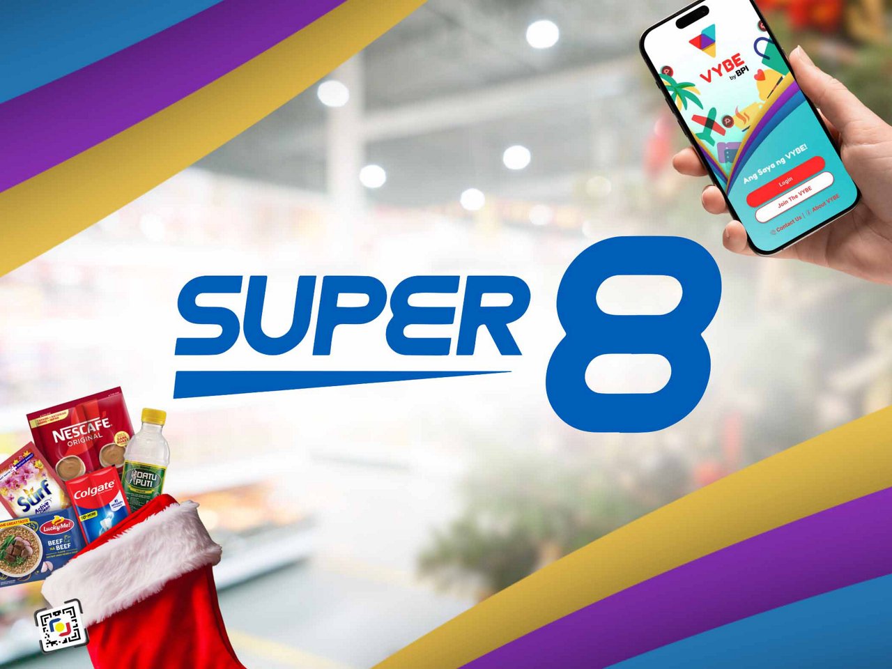 - Pay via QR Ph using VYBE for purchases at Super8 supermarkets to get a free grocery item.